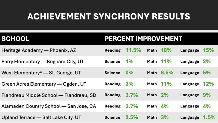 We provide live and/or online training for administrators, teachers, and parents. We also provide online courses, readings, and activities for teachers and parents. We can also follow up with webinars or online meetings for teachers or parents to ensure that participants have opportunities to consult as they implement Achievement Synchrony and see how it improves classroom behavior, focuses on achievement, and results in success for teachers and students.